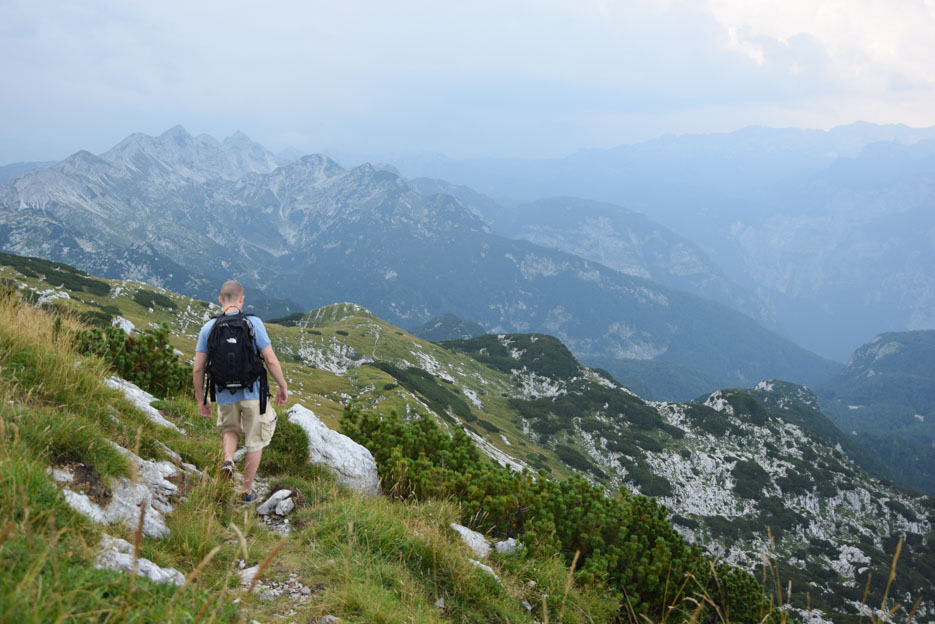 Der Outdoorvibe hatte schon am unteren Ende der Seilbahn, am See Bohinj, Besitz von uns ergriffen. Sportbegeisterte aus allen Teilen Europas gehen hier Kajaken, Mountainbike fahren, Paragliden oder praktizieren eine andere sportliche Waghalsigkeit, die man gerne mit einer auf den Helm geschnallten Actioncam dokumentiert. Wer es etwas klassischer mag, schnürt den Wanderstiefel und nimmt sich, wie wir heute, den Vogel vor. Die Tour gilt als recht einfach zu bewerkstelligen, soll aber umso lohnendere Blicke über die julischen Alpen bieten. Die sportive Stimmung hier beflügelt und wir machen trotz des steilen Anstiegs große, schnelle Schritte.